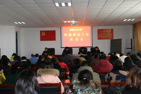 3月24日下午,蔡集实小召开师德师风建设工作推进会。中心校和中心园的全体教师参会,会议由校支部副书记吴明英同志主持。