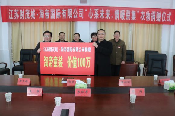 1月27日,上级领导及爱心企业代表汇聚bet365资讯,举行“江苏财贸城.淘帝国际有限公司‘心系未来,情暖蔡集’”衣物捐赠仪式。